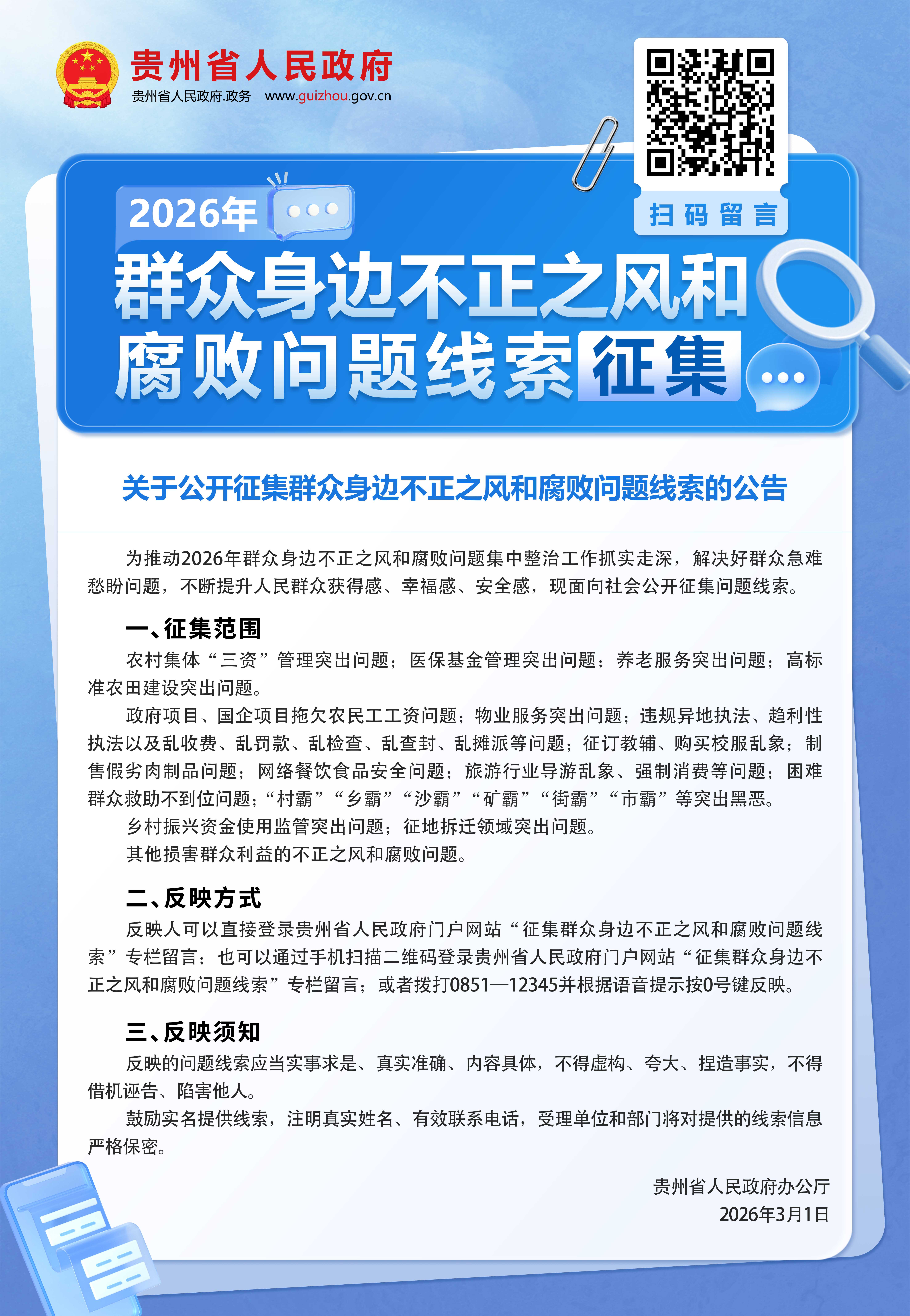 关于公开征集群众身边不正之风和腐败问题线索的公告